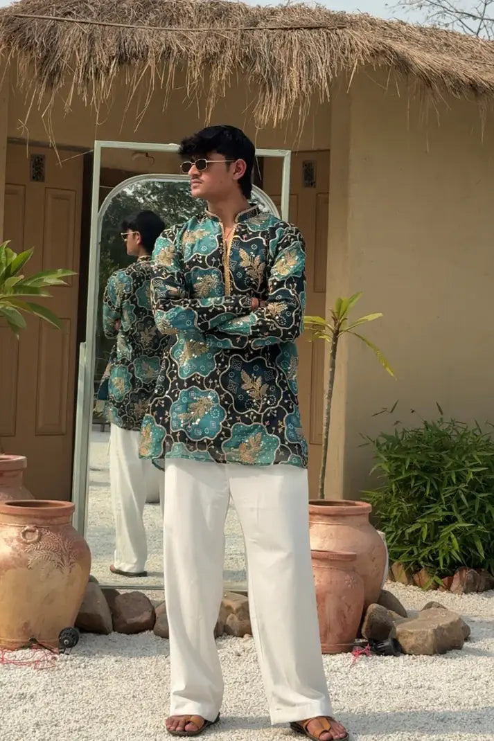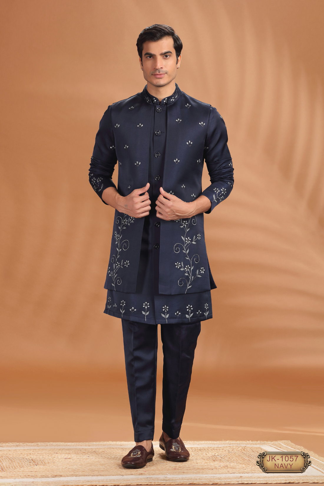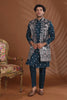 Navy & Rama Green Embroidered Indo-Western Jacket Set for Men| Designer Festive & Wedding Outfit