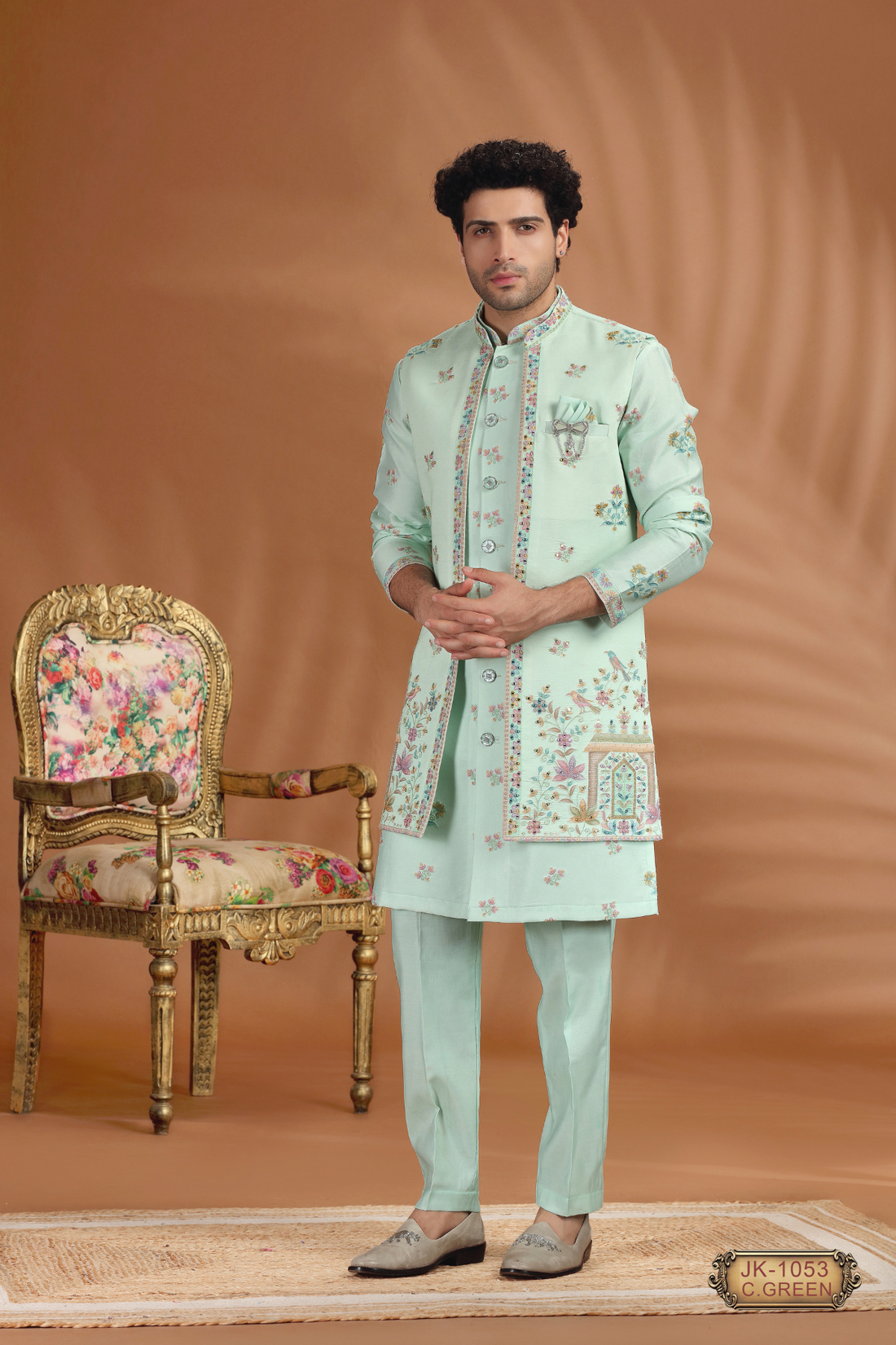 Green Embroidered Indo-Western for Men โ Perfect for Wedding Look| Pre-Book Now(Delivery Time May Extend Slightly Due to High Demand)
