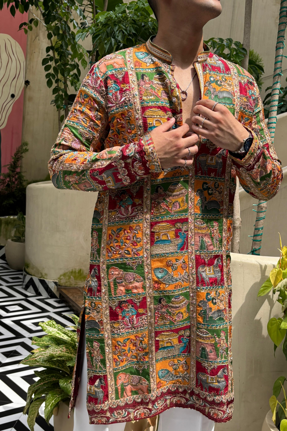 Heritage Royal Motif Kurta in Multicolor Embroidery Paired With Luxury Korean Pants