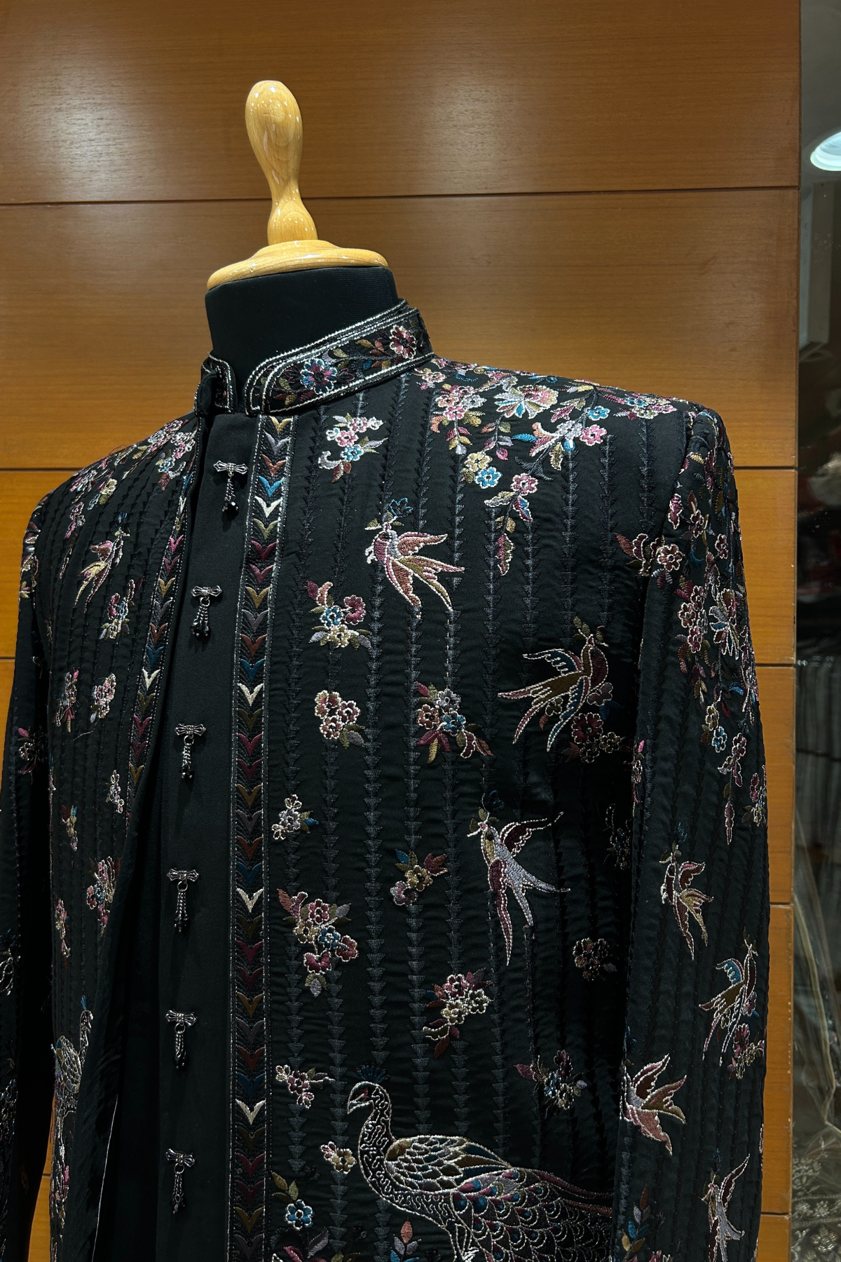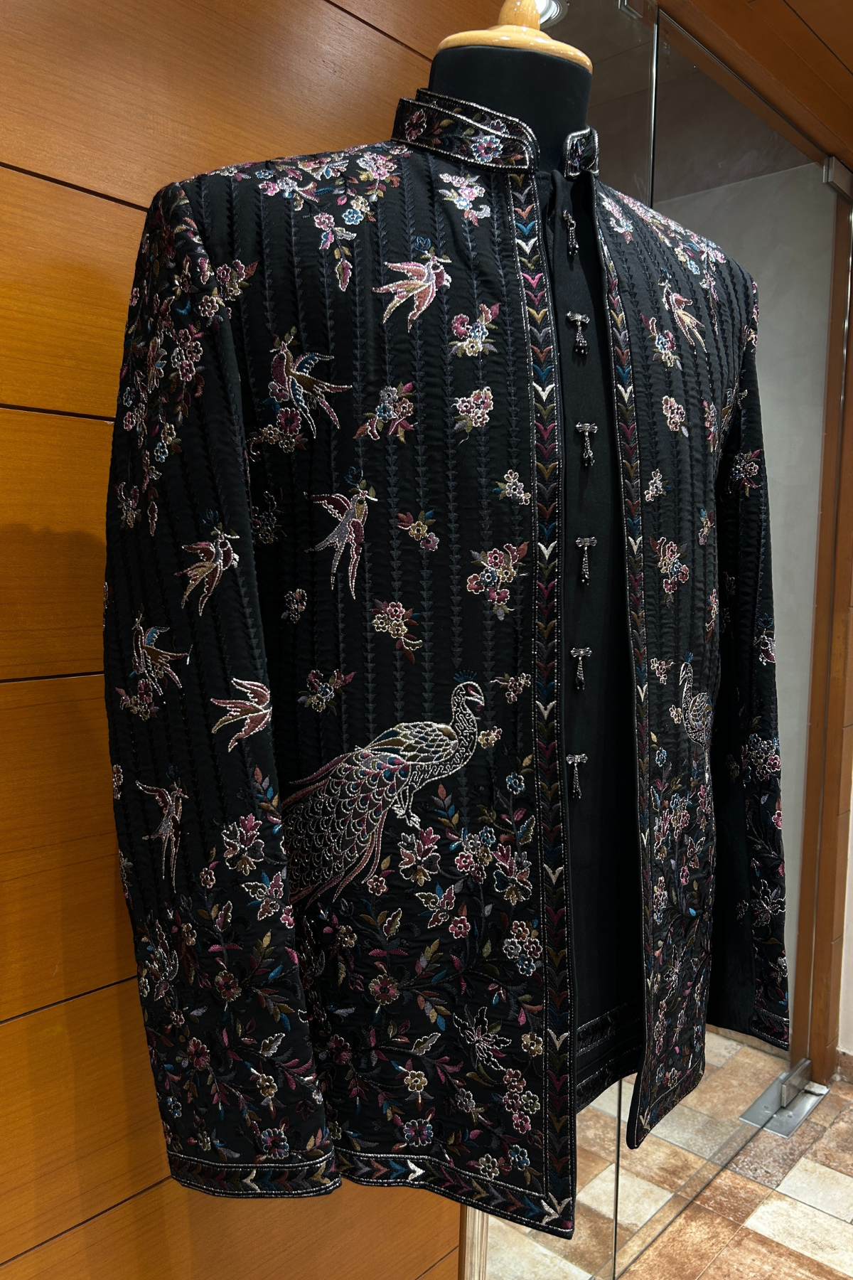 Embroidery: Heavy Handcrafted Floral & Peacock Motifs