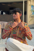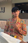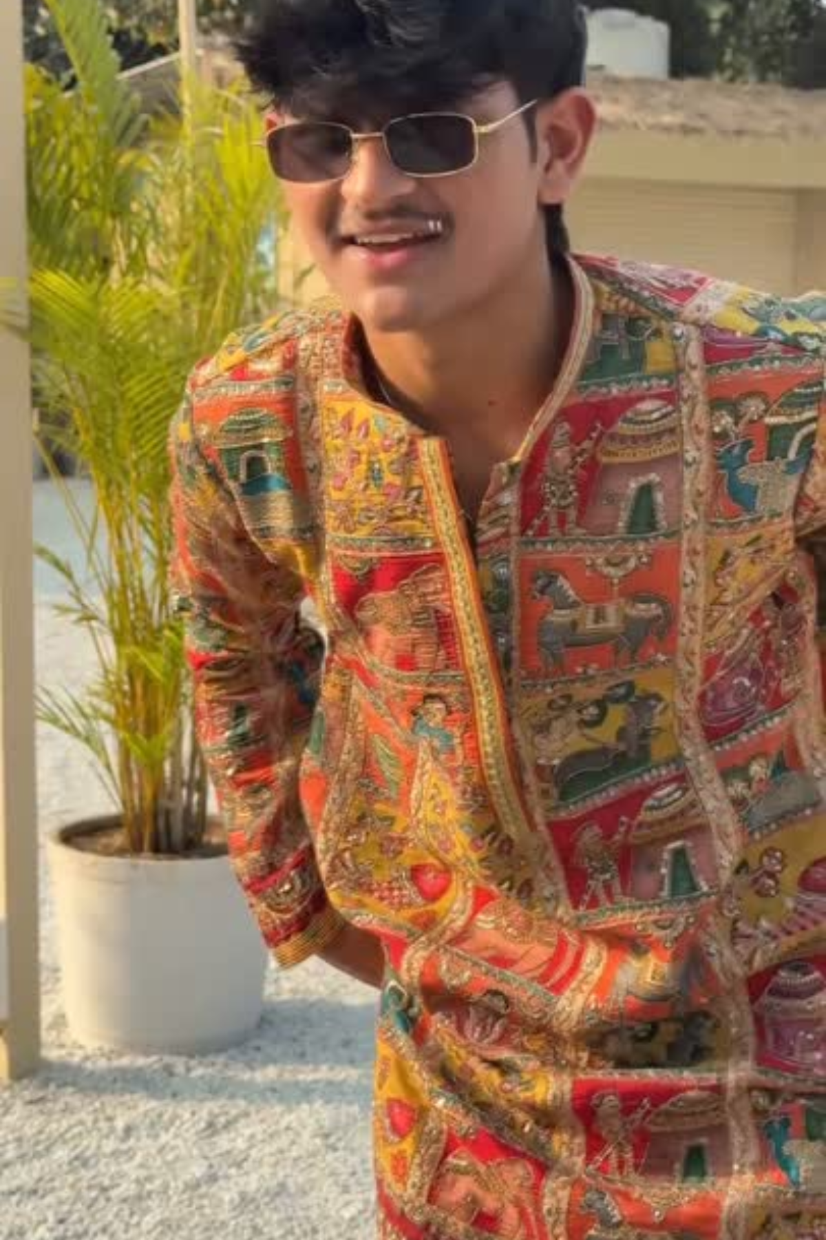 Designed for men who appreciate culture with a contemporary sensibility, this kurta balances bold visual storytelling with refined elegance. The rich color palette and structured silhouette make it ideal for festive occasions, wedding functions, cultural gatherings, and statement celebrations.