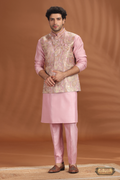 Soft Pink Ethnic Kurta Pajama for Groom & Engagement Functions with Embroidered Coti Set