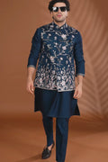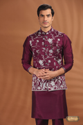Floral Embroidered Coti Kurta Set for Men – Rama Blue & Wine