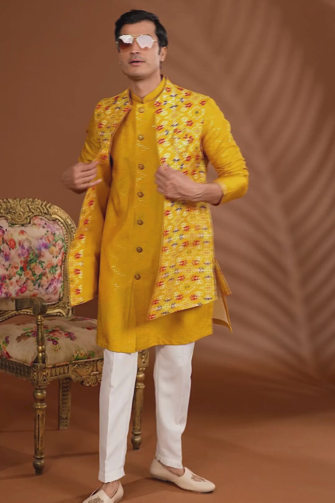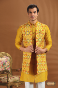 Groom Special Haldi Ceremony Open Jactket Indo-Western Set