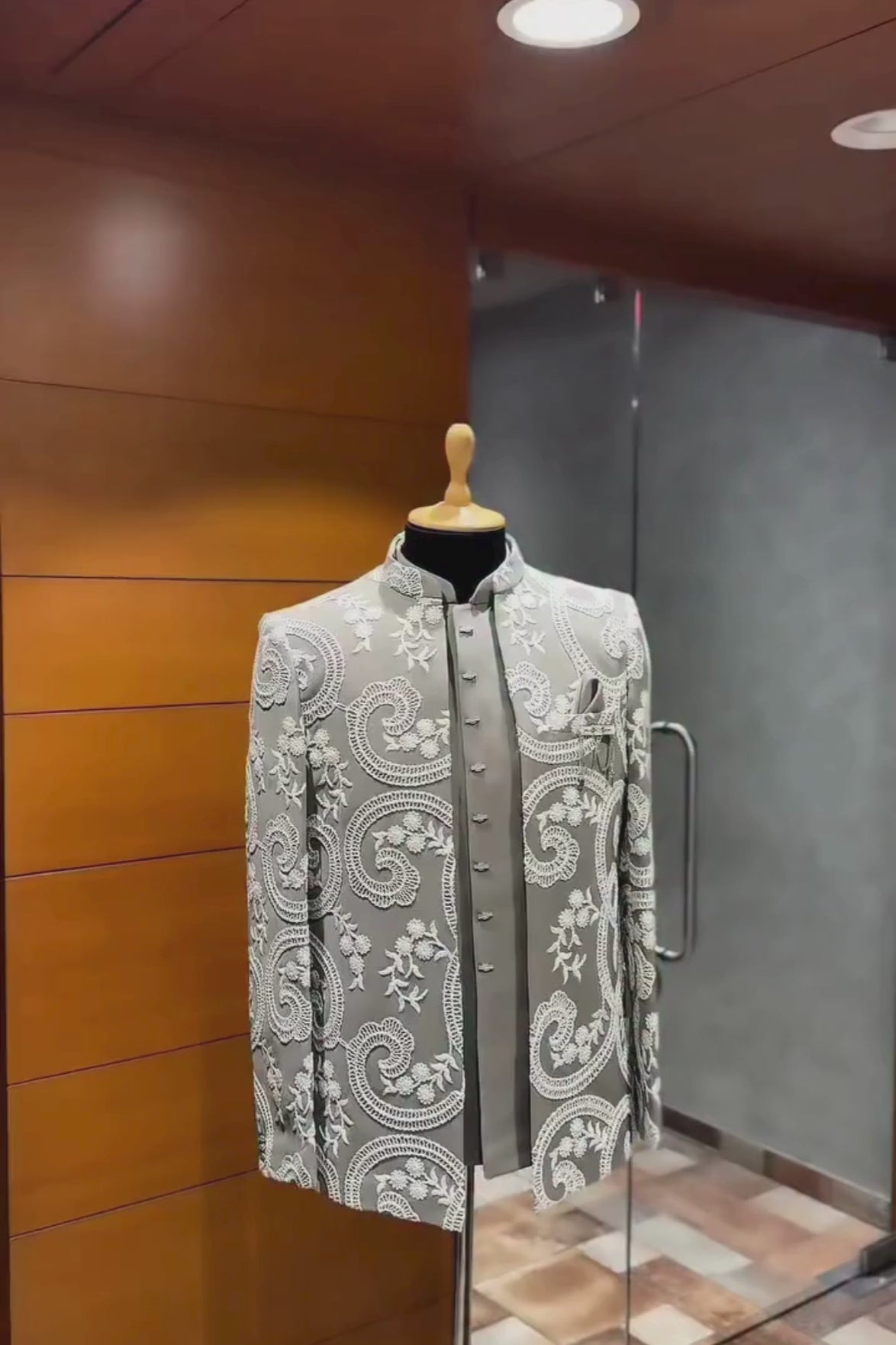 The Heritage Royal Muted Brown Embroidered Jodhpuri Suit showcases a regal Muted Brown base adorned with intricate ivory threadwork, highlighting luxurious craftsmanship and refined detailing. Designed with a mandarin collar, handcrafted buttons, and an elegant pocket adornment, this Jodhpuri offers a perfect blend of heritage charm and modern sophistication. Ideal for weddings, receptions, and premium festive occasions, it delivers a distinguished and royal look for the modern gentleman.