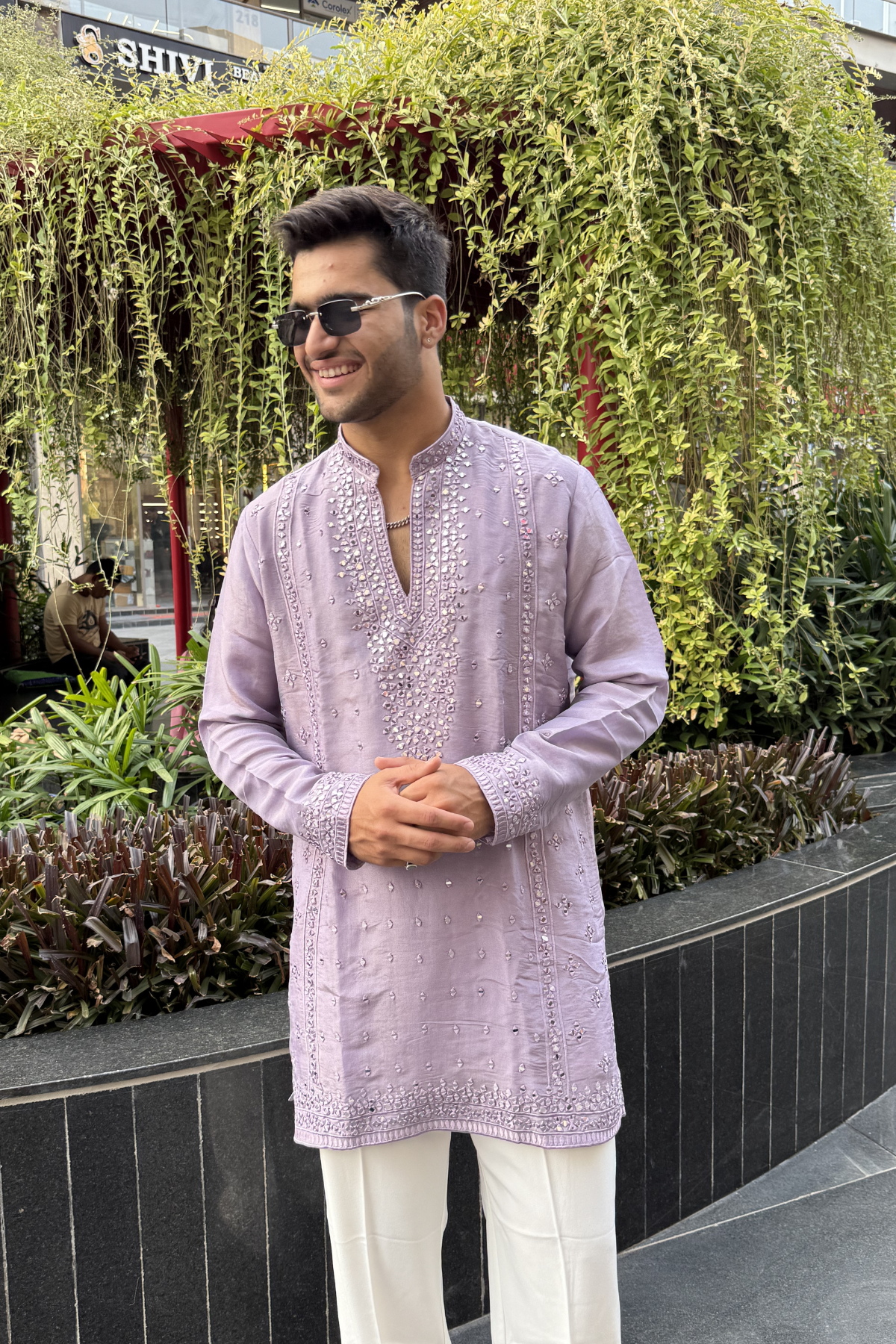 Lavender & Warm Pink Mirror Work Kurta For Men (Luxury Korean Pants) Pre-Book Now