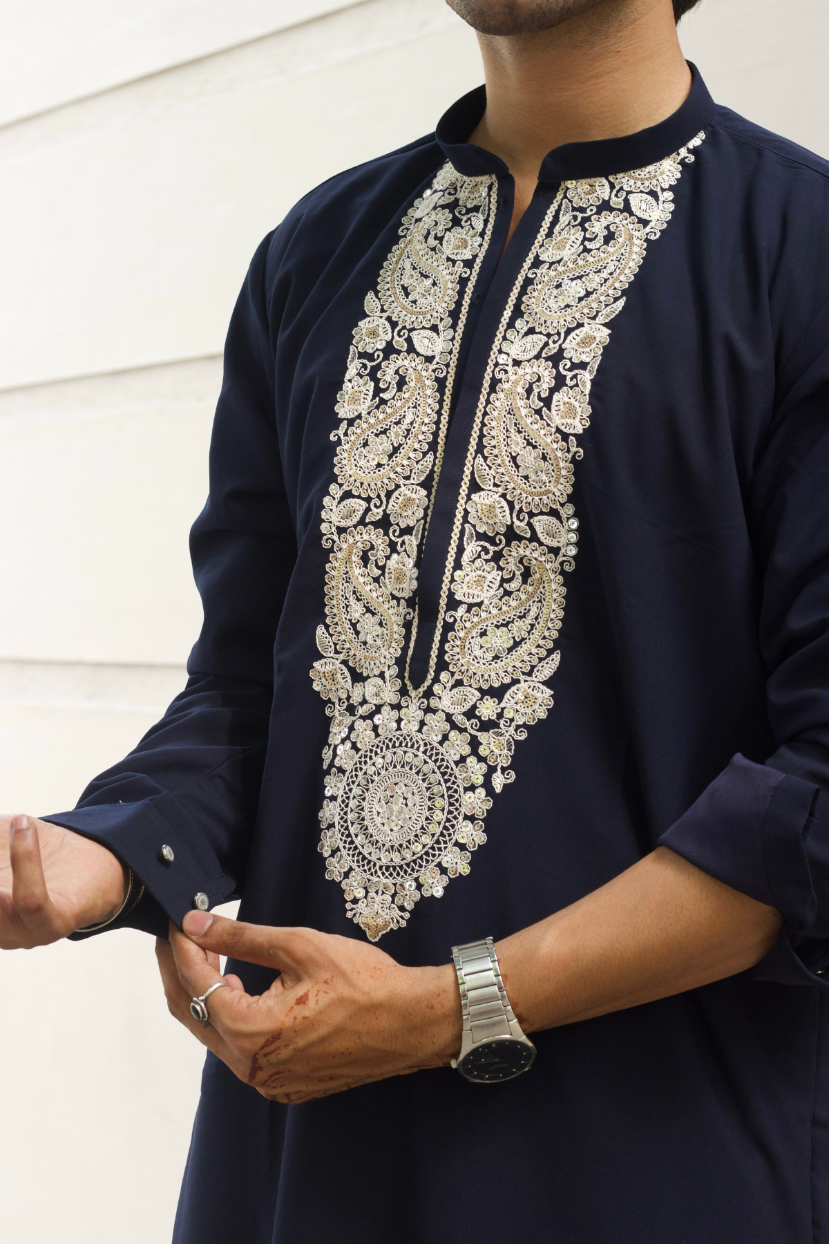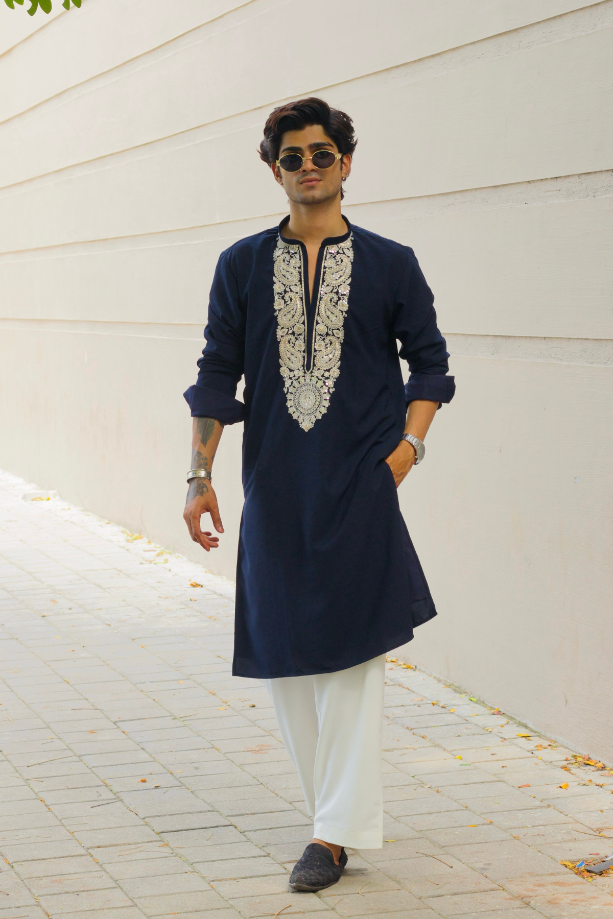 ✅ Premium Navy Blue Kurta with Intricate Embroidery