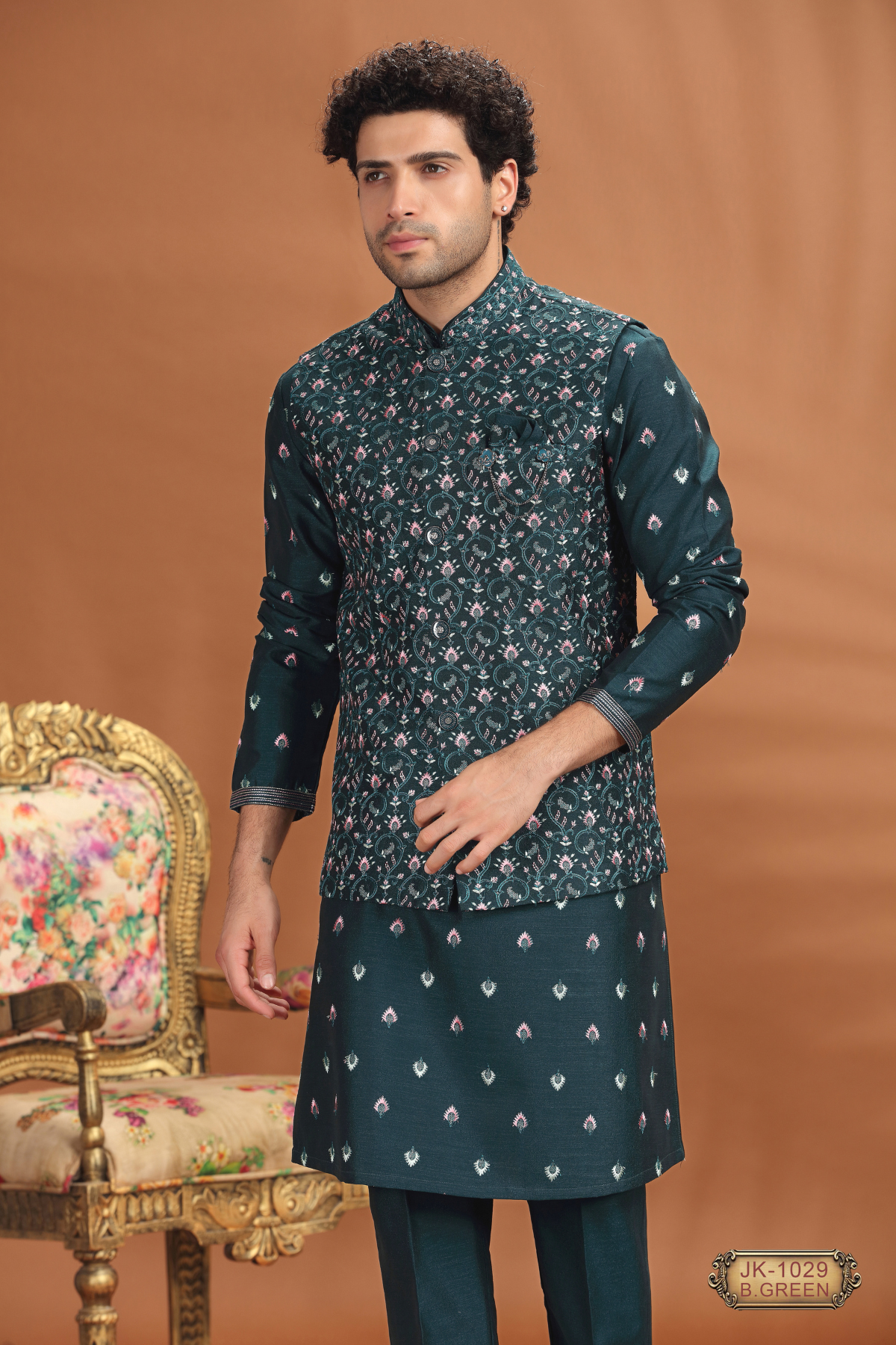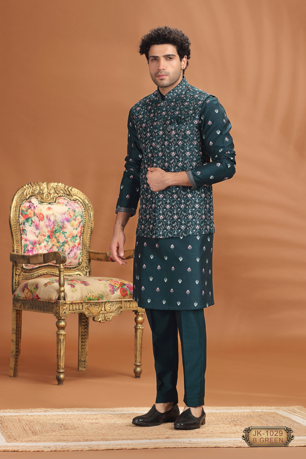 Men’s Coti Kurta Sets – Bottle Green & Navy Outfits for Weddings & Receptions