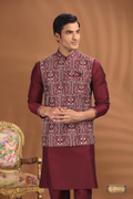 Menโs Coti Kurta Sets โ Deep Rani & Cream Outfits for Weddings & Receptions