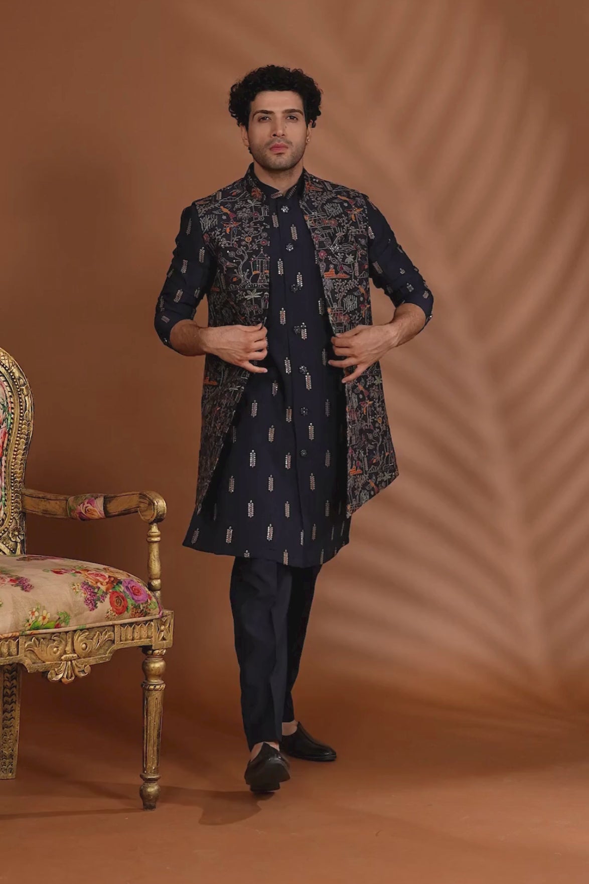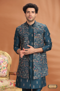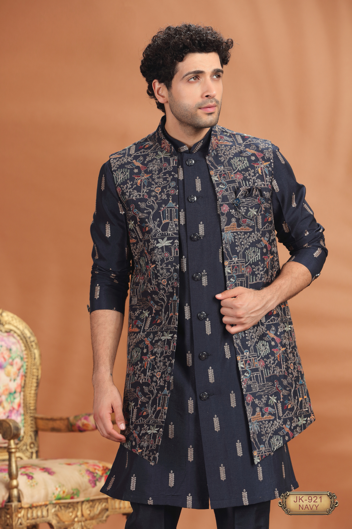 Nehru Jacket Kurta Set for Men – Navy & Rama | Designer Festive Indo-Western Outfit