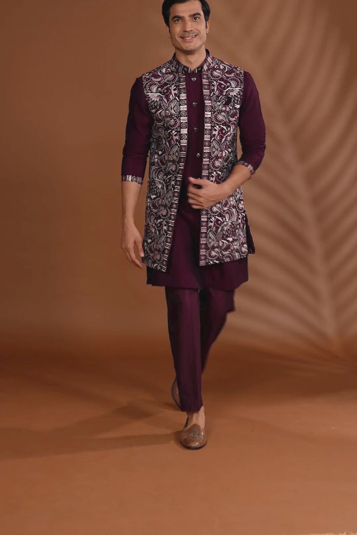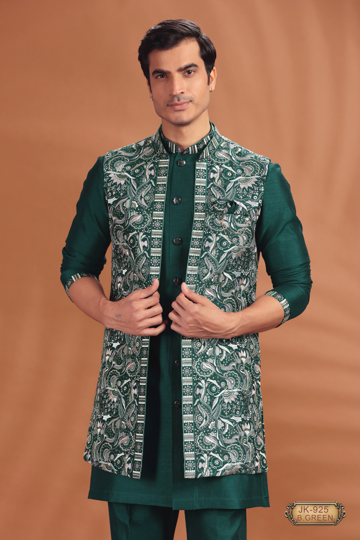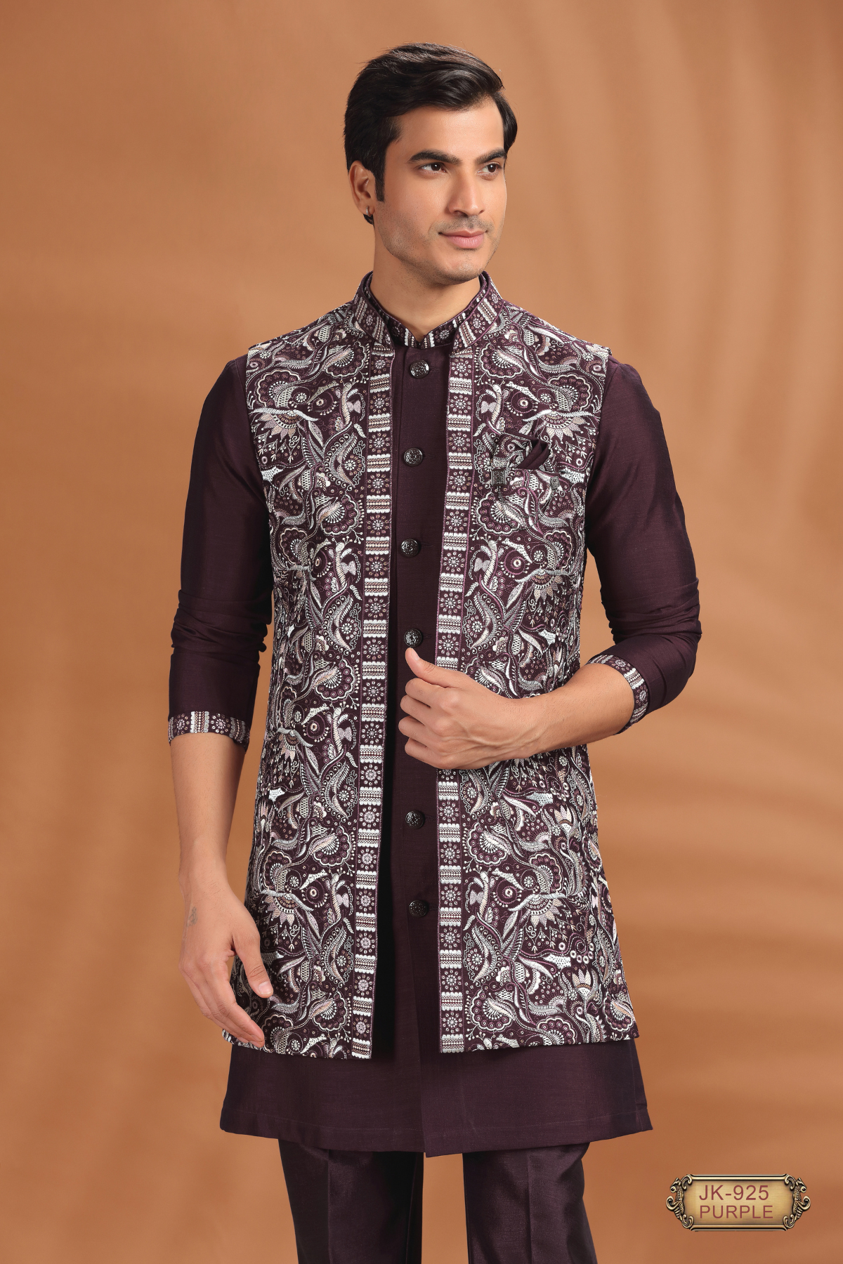 Premium Indo Western Jacket Set for Men – Rich Colours: Bottle Green & Purple