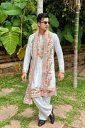 Look effortlessly stylish in our White Kurta Set with Pastel Thread Embroidery - perfect for any festive or ethnic occasion. The delicate pastel thread embroidery adds a touch of elegance to this traditional ensemble. And the baggy pant provides both comfort and style. Your go-to outfit for any celebration!